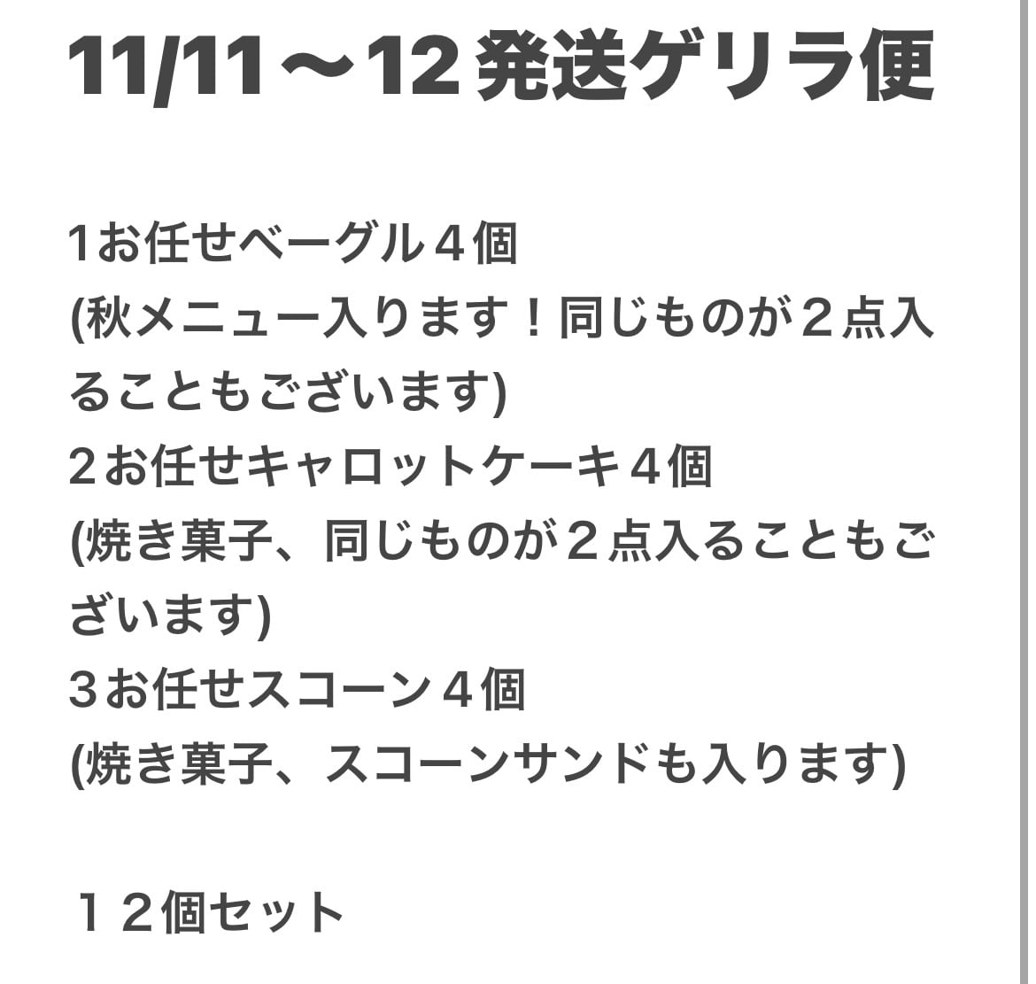 11/11〜12発送ゲリラ便焼き菓子多めセット